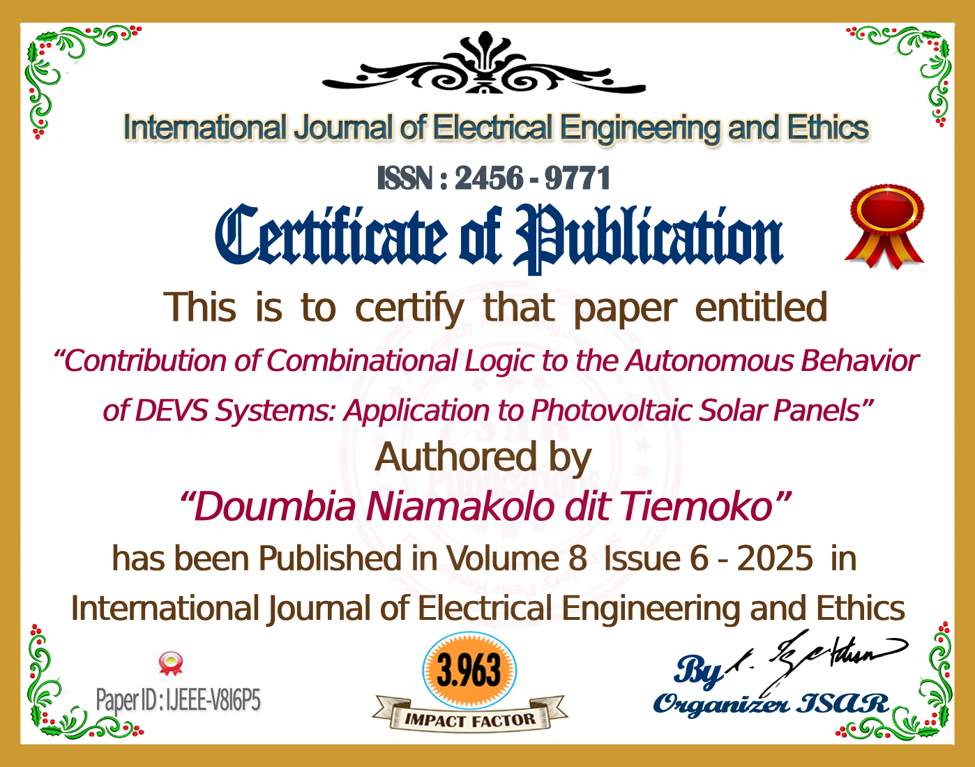 Contribution of Combinational Logic to the Autonomous Behavior of DEVS Systems: Application to Photovoltaic Solar Panels | IJEEE Volume 8Â -Issue 6 | IJEEE-V8I6P5
