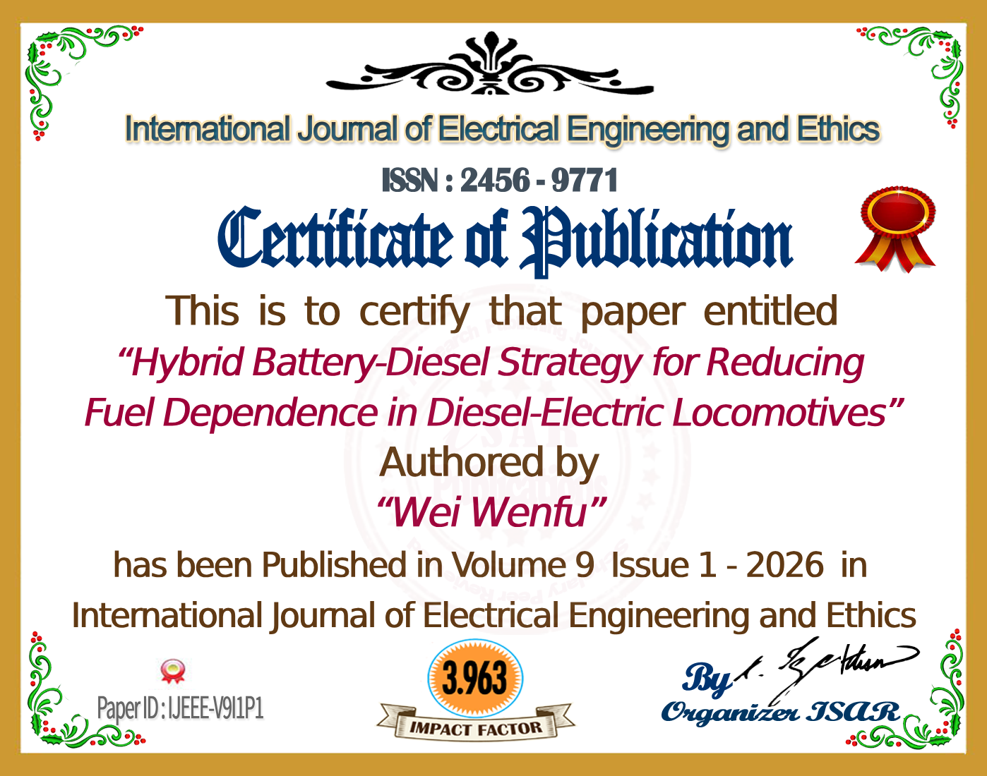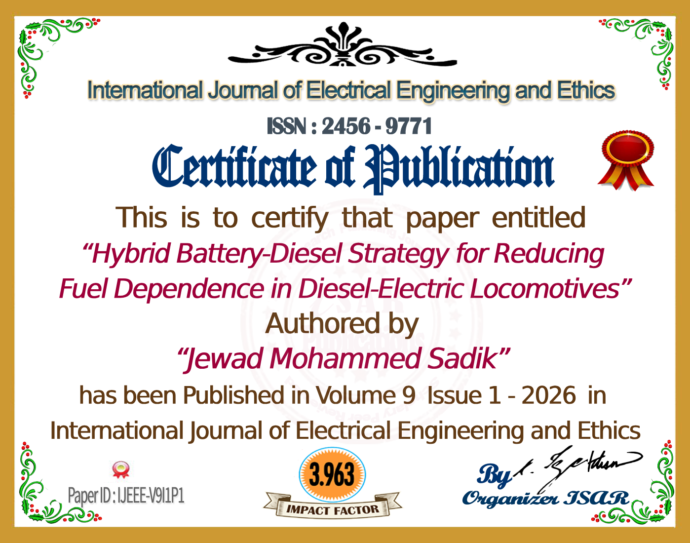 Hybrid Battery-Diesel Strategy for Reducing Fuel Dependence in Diesel-Electric Locomotives | IJEEE Volume 9Â -Issue 1 | IJEEE-V9I1P1